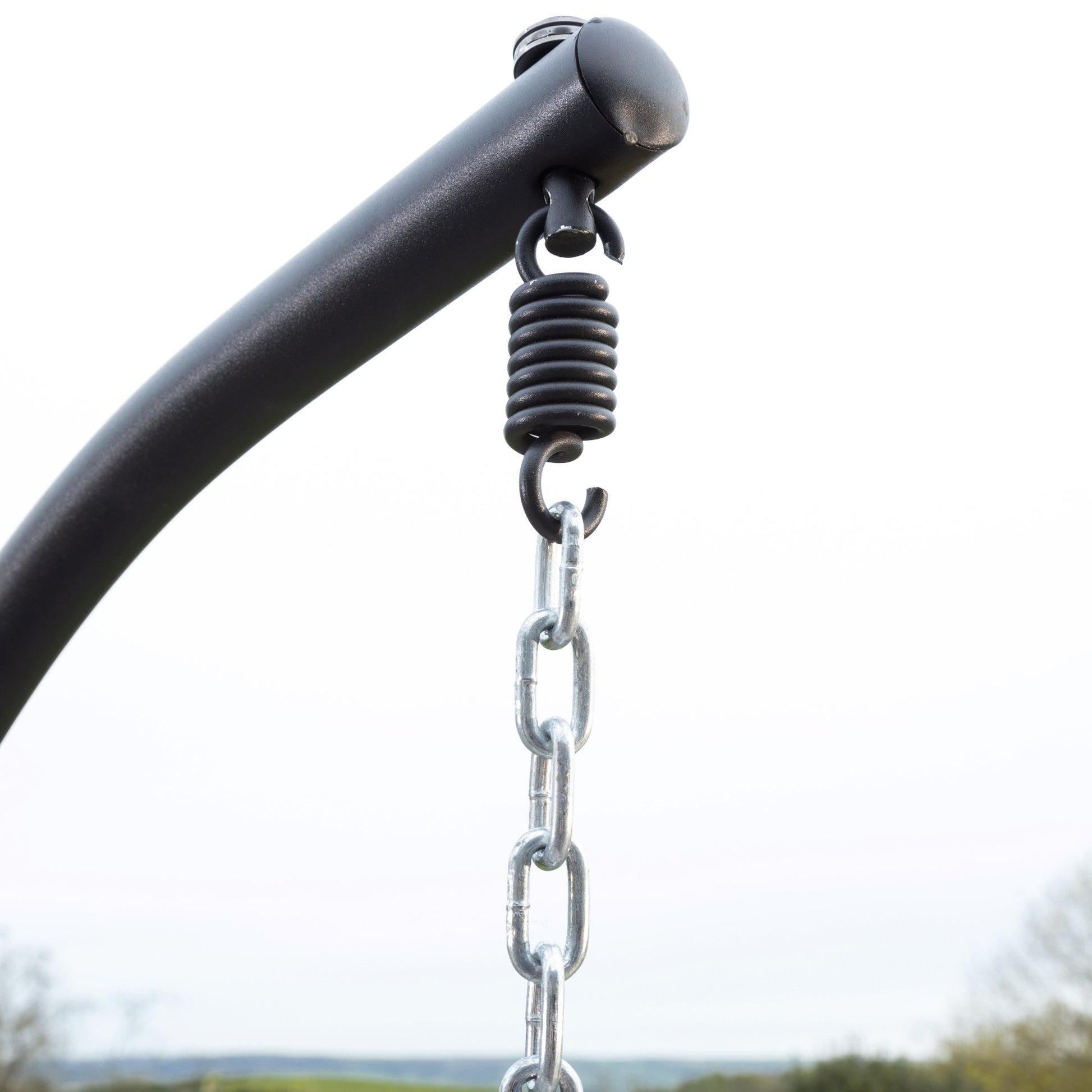 Larger version of our most popular egg chair. Timeless dark grey cushions, with our UV protected grey egg. Powder coated black metal frame. Comfy guarantee as standard. Delivered with the egg already assembled and on a two man service, only minor frame assembly required.