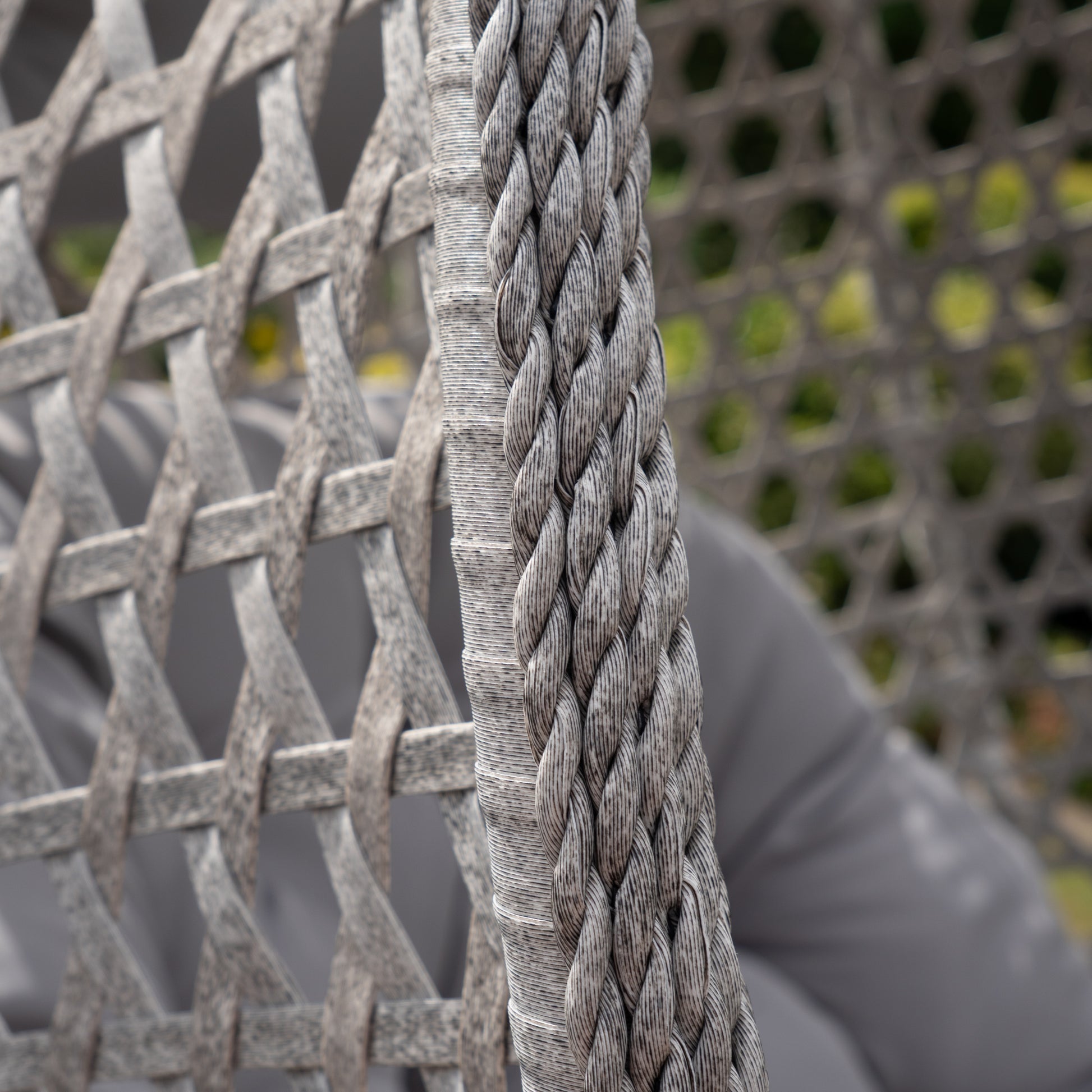 Our best selling design. Timeless light grey cushions, with our UV protected grey egg. Powder coated black metal frame. Comfy guarantee as standard.